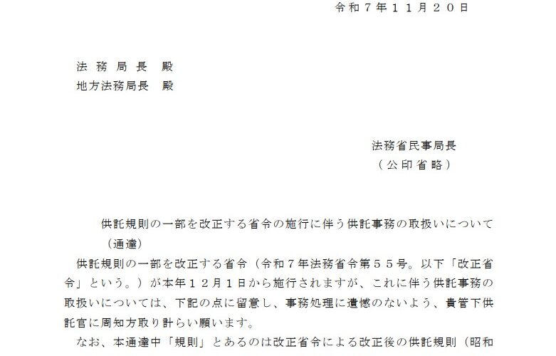 供託規則の一部を改正する省令の施行に伴う供託事務の取扱いについて(通達)〔令和7年11月20日付法務省民商第196号〕 供託規則の一部を改正する省令の施行に伴う供託事務の取扱いについて(通達)〔令和7年11月20日付法務省民商第196号〕 供託規則の一部を改正する省令の施行に伴う供託事務の取扱いについて(通達)〔令和7年11月20日付法務省民商第196号〕ダウンロード 関連記事はありません。